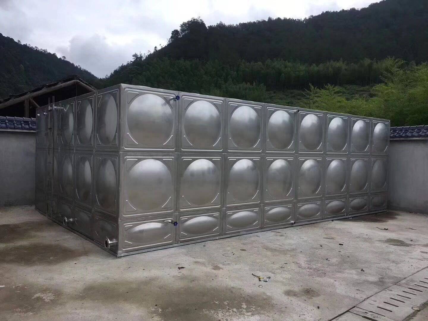 不锈钢装水箱的箱壁、箱底、箱顶均采用定型模具压制成型的型板制作,型板材料选用食品级优质不锈钢,水箱设计内加强结构型式,水箱箱体为型板装配氩弧焊接而成,型板拼装交叉部位设计双向加强联杆。箱体侧板与底板间设置垂直加固柱,水箱侧板四角上每层相邻型板间设置水平加强板。加强材料同箱体材料,水箱底部设置碳钢槽钢支架。水箱附件有检查孔,内外扶梯,工艺管口。材料均为不锈钢,水箱工艺管口按用户提供的图样设计。外观整洁美观。